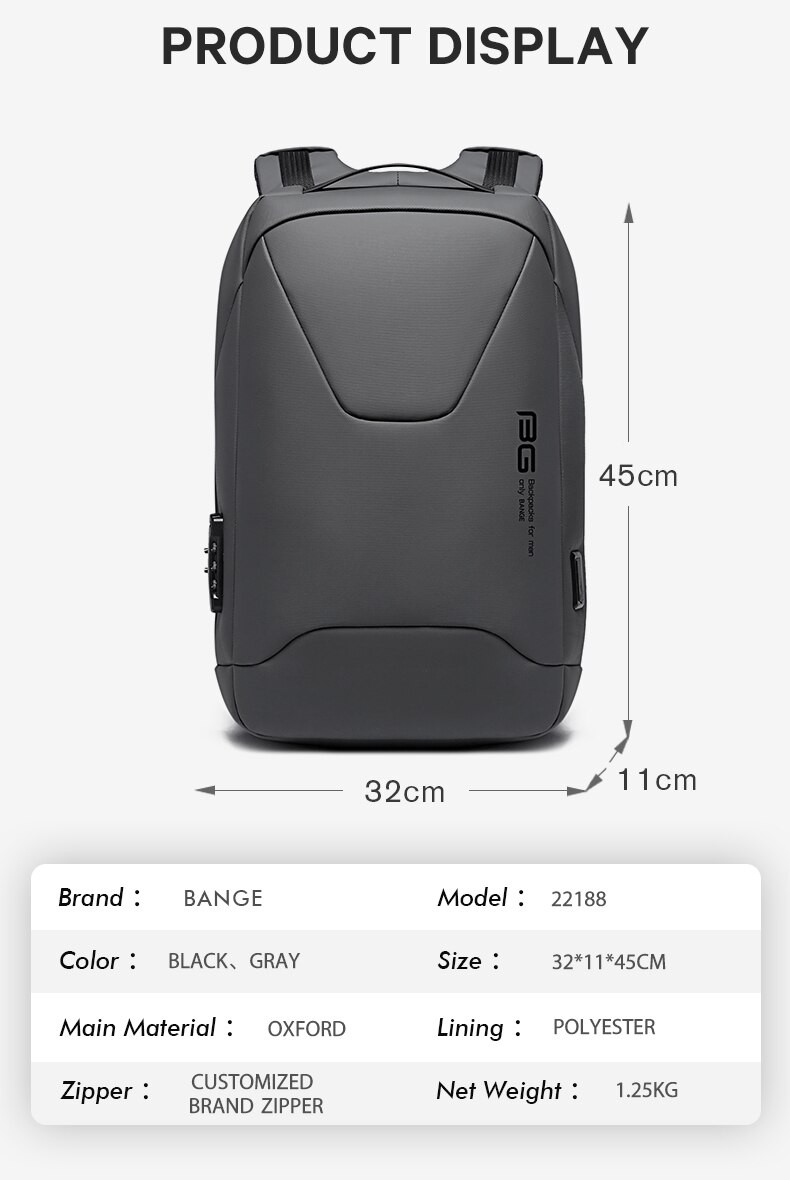 Balo laptop chống trộm chống nước cao cấp Bange BG-22188